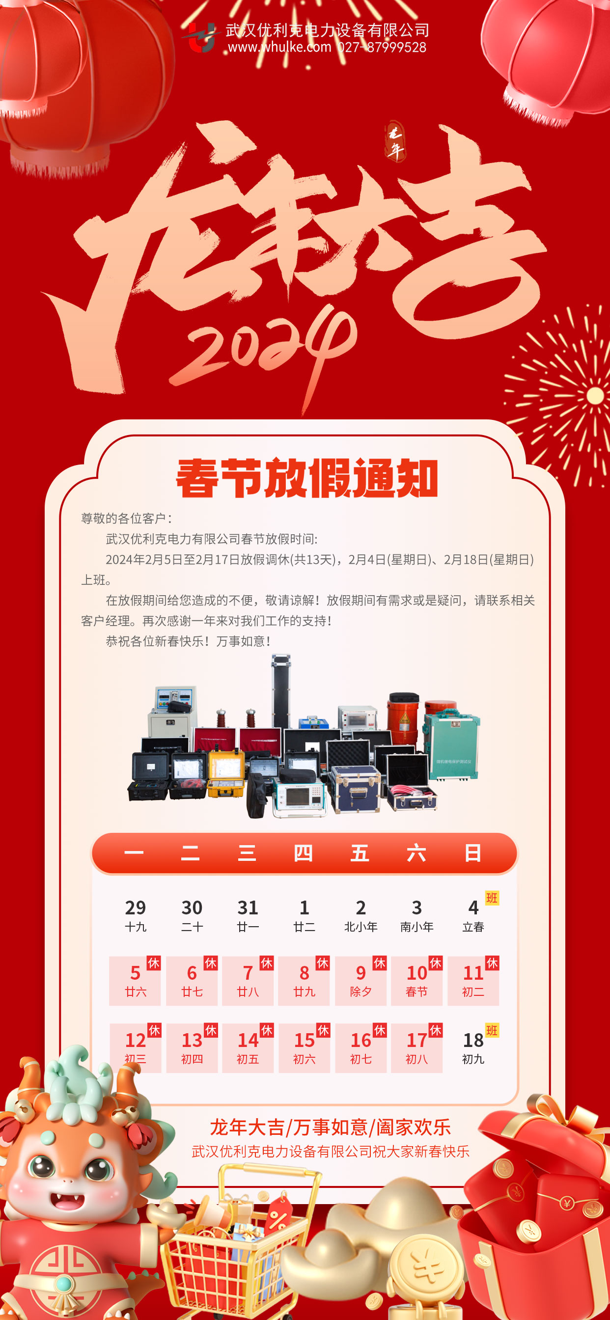 歷添新歲,萬事興隆。適逢2024龍年新春,感謝各位客戶長期以來對我司的支持和厚愛,新的一年里我們將更加努力提供更
