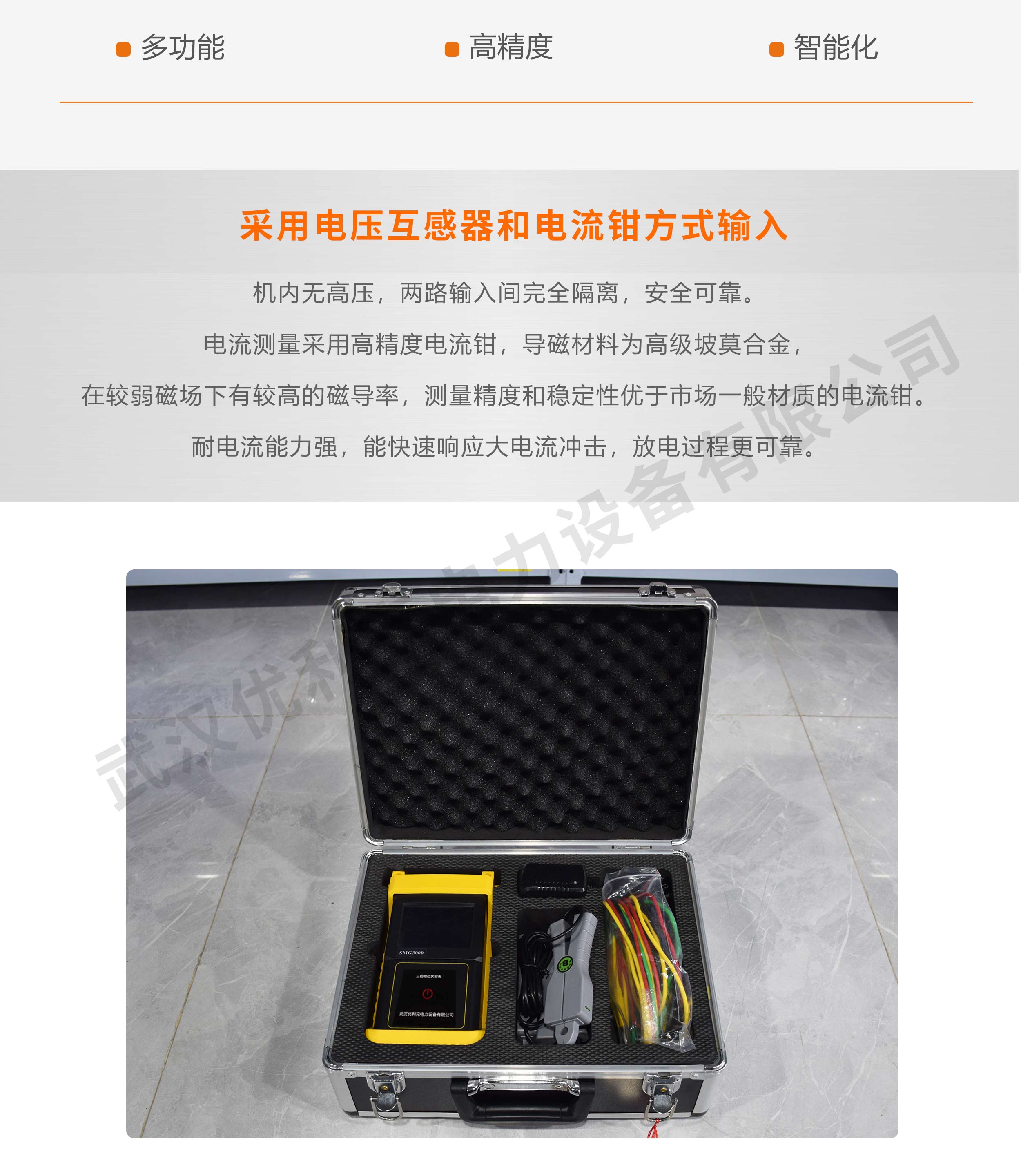 11、電流測量采用高精度電流鉗,導磁材料為高級坡莫合金,在較弱磁場下有較高的磁導率,測量精度和穩定性優于市場一般材質的電流鉗。
